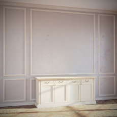 Изделия полностью выполнены из австрийского МДФ (МДФ, облицованное шпоном дуба). Корпуса и рамки фасадов изготавливаются из 22 мм МДФ (23 мм МДФ, облицованное шпоном дуба), вставки в фасады изготавливаются из 6 мм МДФ (6 мм МДФ, облицованное шпоном дуба), задняя стенка из 4 мм МДФ. Декоративные элементы - карниз, подкарнизник, накладки, пилястры-выполнены из массива дуба и поставляются из Италии. Корпуса ящиков выполнены их фанеры 12 мм, донышки ящиков из фанеры-6 мм.